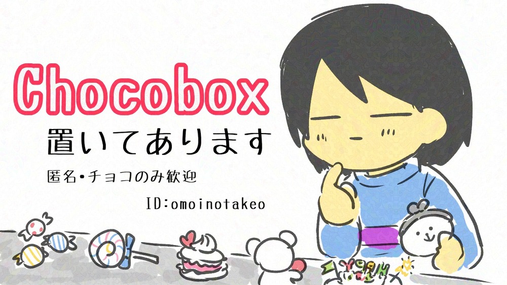 表で叫べない感想などもチョコにのせてどうぞ!匿名歓迎です🙌(確認は不定期ですが、タイミングが合えば作品をもってお返事します)